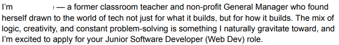 Before I go there, I want to bring attention to a vital aspect of this process. Being able to recognise who used AI to generate their cover letters.