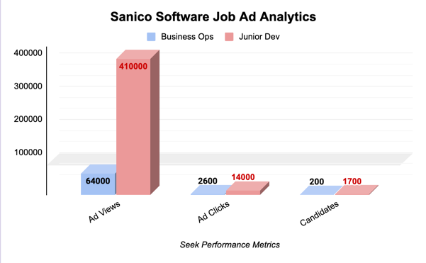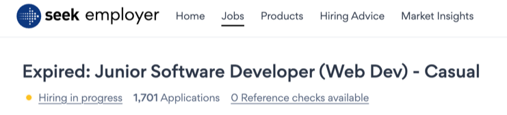 If we’re talking figures, here are some actuals from our Seek statistics for our most recent role of the junior software dev.